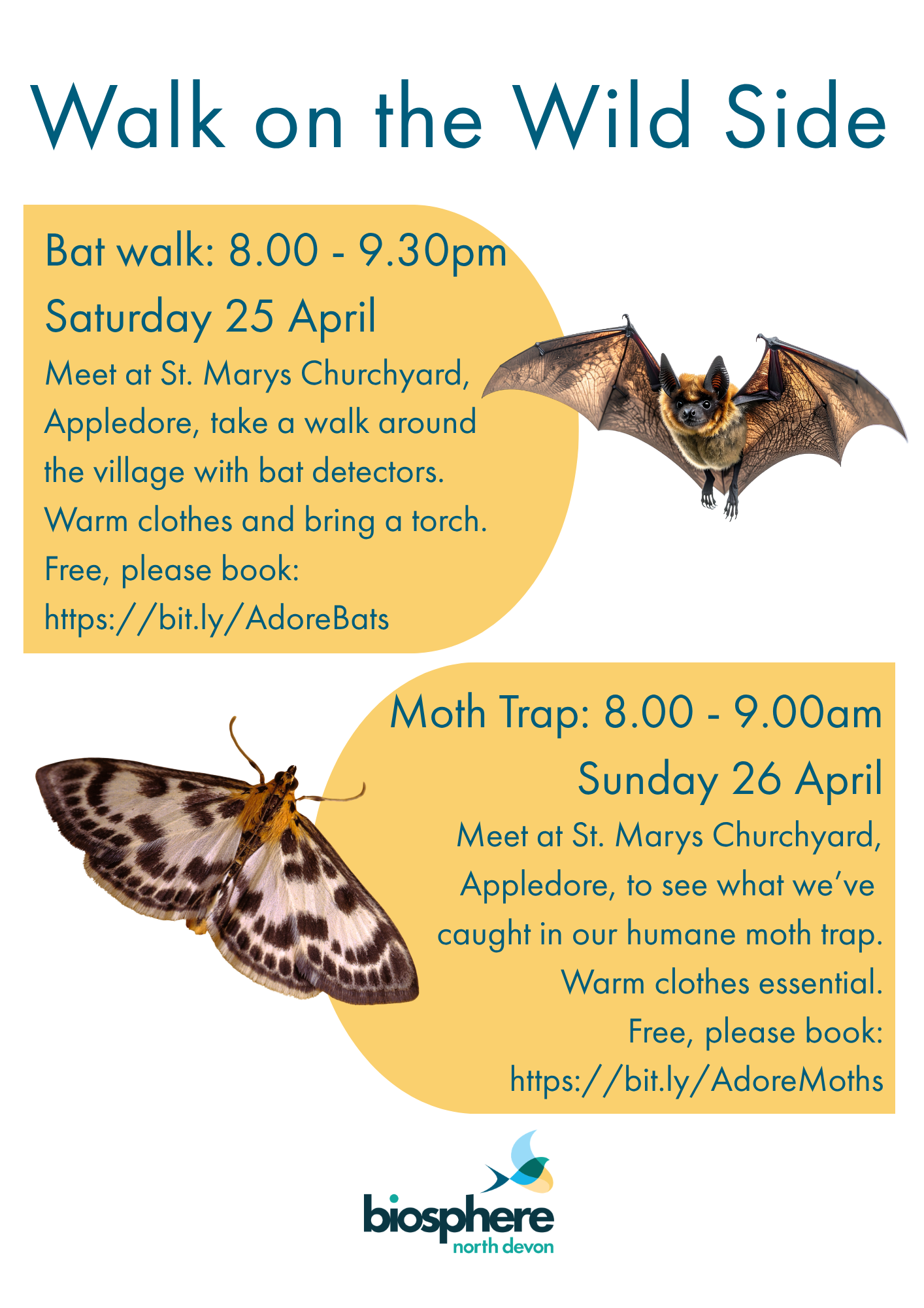 - For details of free wildlife walks (including a night bat hunt) this weekend organised by North Devon Biospghere, see here