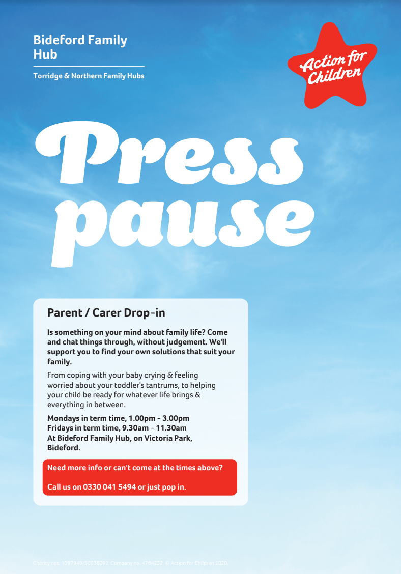 - 9.30am-12.30pm Wednesday 12th March Torridge Family Hub, Victoria Park, Bideford is holding a free drop-in for parents to chat to Speech and Language therapists and Special Educational Needs Advisors. See here for more information.