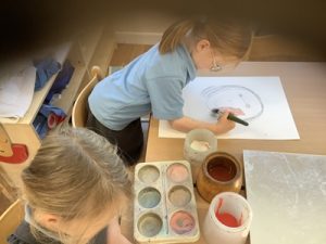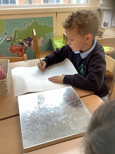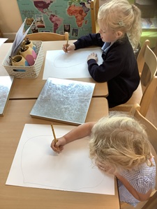 We have been painting our self portraits using ready mixed paint and powder paint.