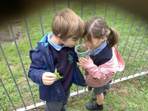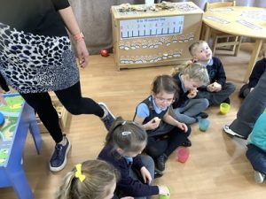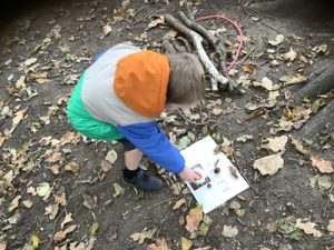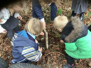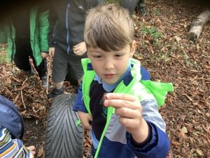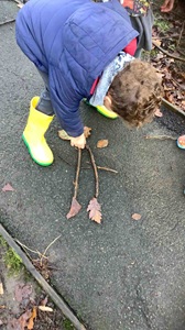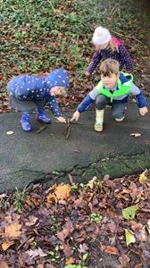 We have been reading the story ‘Stick Man’ and we decided to go to the woods to create our stick families.