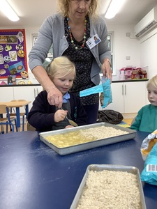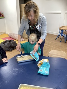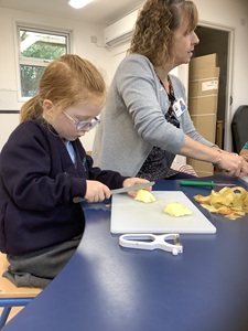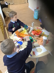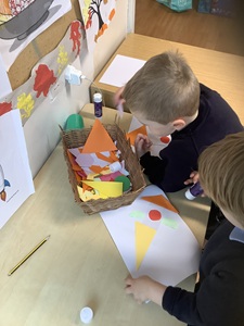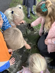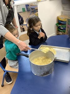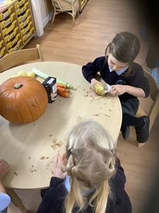 We have been learning about Autumn. This week we made pumpkin soup and bread and we visited the woods to look for signs of Autumn.